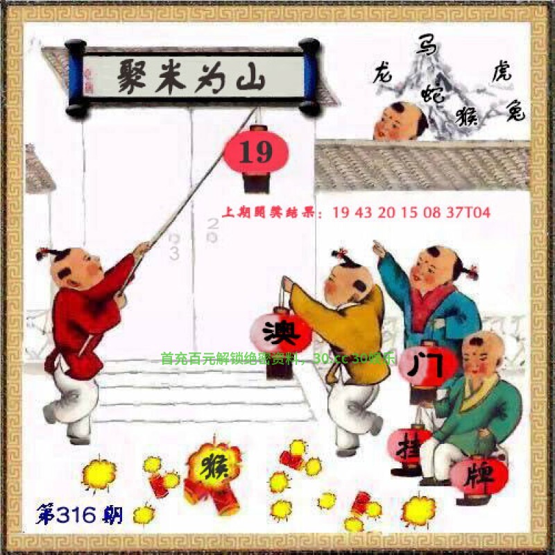 | 316期九肖 | 马兔龙猪鸡猴牛羊鼠 | 开:马24 |